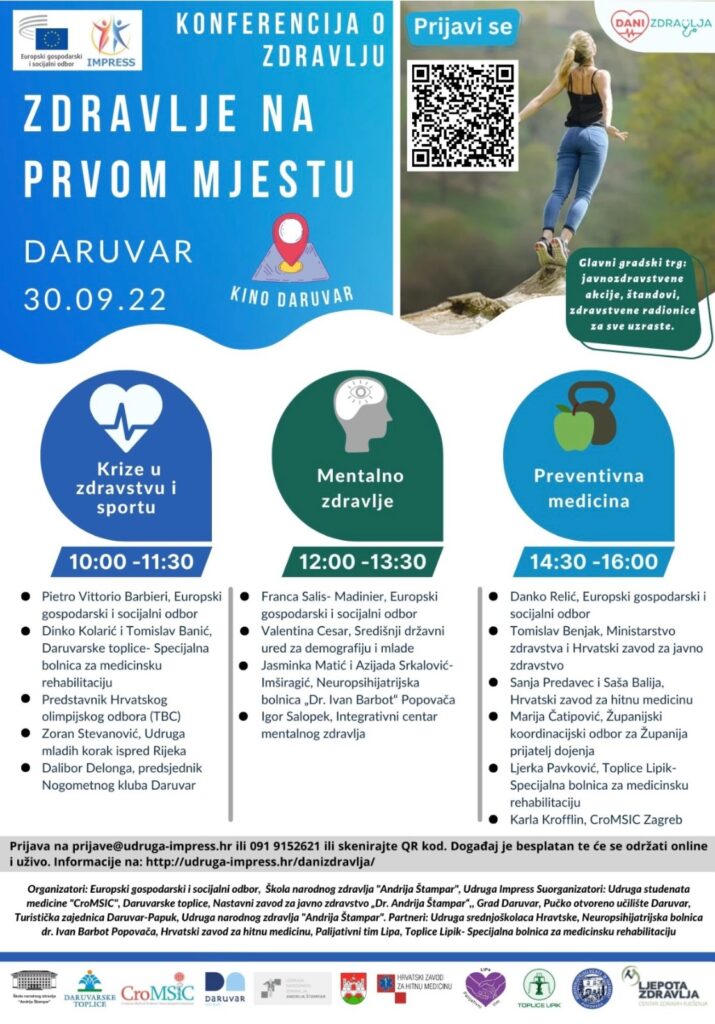 Udruga Impress u suradnji s Europskim gospodarskim i socijalnim odborom, Školom narodnog zdravlja „Andrija Štampar“, Udrugom studenata medicine CroMSIC, Daruvarskim toplicama i Gradom Daruvarom organizira Dane zdravlja koji dostižu europsku razinu. Ove godine održavaju se brojne aktivnosti kroz koje se promovira sport i zdravlje u Hrvatskoj, ali i cijeloj Europskoj uniji.