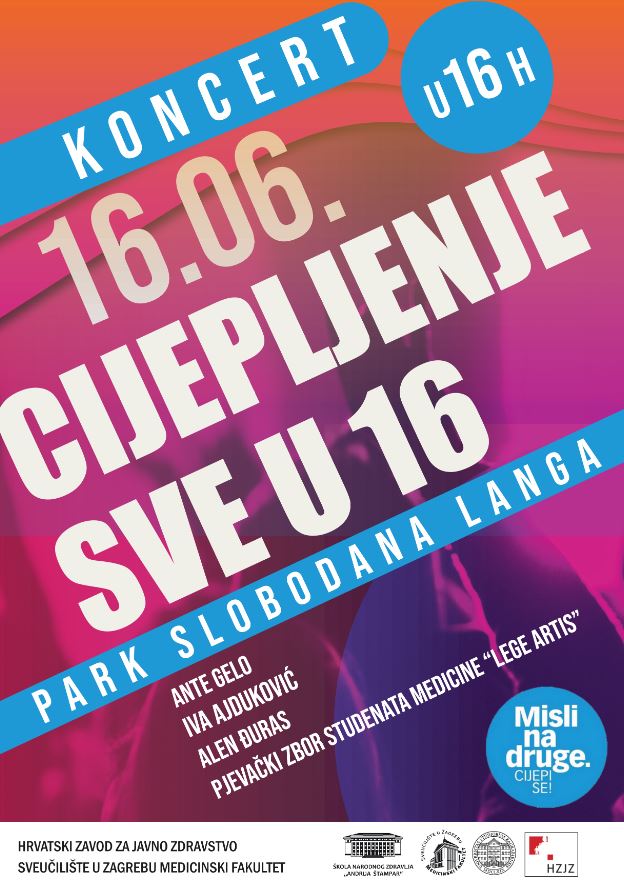 Škola narodnog zdravlja „Andrija Štampar“ Medicinskog fakulteta Sveučilišta u Zagrebu i Hrvatski zavod za javno zdravstvo 16. lipnja 2021.g. u 16 sati u Parku Slobodana Langa (uz Školu narodnog zdravlja) organiziraju promotivni koncert CIJEPLJENJE SVE U 16.